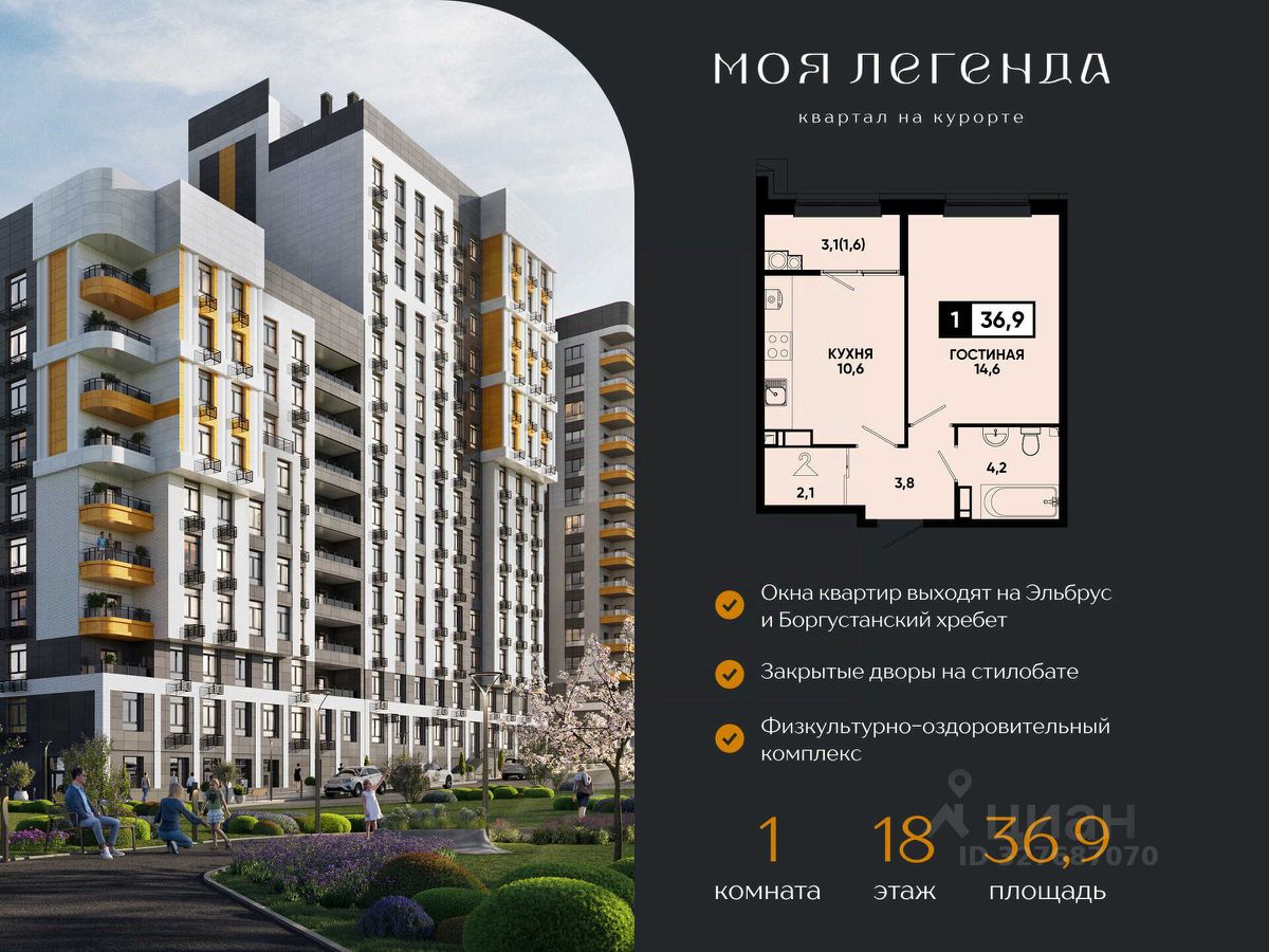 1-комнатная квартира в ЖК "Моя Легенда" от застройщика! Мечтаете о собственной уютной квартире в живописном месте? Хотите жить в современном доме с готовым ремонтом и всей необходимой инфраструктурой? Тогда это предложение для вас! 1-комнатная квартира в ЖК "Моя Легенда" ПРЯМО ОТ ЗАСТРОЙЩИКА — "ЮгСтройИнвест"! ПОЧЕМУ "МОЯ ЛЕГЕНДА" — ЭТО ВАША УНИКАЛЬНАЯ ВОЗМОЖНОСТЬ? Идеальное расположение на курорте! Квартира находится рядом с парком и озером "Моне", в шаговой доступности от центра Кисловодска. — Всего несколько минут до всех удобств города — Магазины, кафе, аптеки, детские и спортивные площадки — всё рядом! — Отличная инвестиция! Идеально для жизни и отдыха! Готовая квартира с ремонтом, мебелью и техникой — экономия до 1 276 500 ₽! Ваши близкие будут жить в уюте и комфорте, а вы сможете наслаждаться всеми преимуществами курорта! ЧТО ВЫ ПОЛУЧАЕТЕ? Квартира "под ключ" с готовым ремонтом, мебелью и техникой Прямой договор с застройщиком — никаких посредников и переплат! Гибкие условия оплаты — семейная ипотека от 6% с ежемесячным платежом от 24 139 ₽ или рассрочка от застройщика! Заселение уже сейчас — ключи на руках! Удобные планировки — максимум пространства для одного человека или пары Архитектура ЖК "Моя Легенда" гармонично сочетает современный стиль и природное окружение, а вид на парк или озеро станет вашей ежедневной радостью! КТО СТРОИТ? Федеральный застройщик "ЮгСтройИнвест"! Надежный застройщик с многолетним опытом и безупречной репутацией Юридическая чистота всех документов и прозрачность сделки гарантированы Ваш шанс приобрести квартиру на курорте и жить в комфорте уже сегодня! Не откладывайте — пока другие думают, вы уже наслаждаетесь жизнью в ЖК "Моя Легенда"! Звоните прямо сейчас, чтобы: Узнать о специальных предложениях и выгодных условиях; Получить бесплатную консультацию; Рассчитать ежемесячный платеж; Выбрать лучшее расположение с видом на парк или озеро! Мы не просто продаем квартиры — мы создаем ваш комфорт и уют на курорте! Сохраняйте это предложение, чтобы не упустить шанс на выгодное и комфортное жилье!
