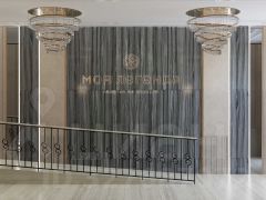 — Холлы с дизайнерской отделкой, стеклянные двери, керамогранит премиум-класса, подсветка;