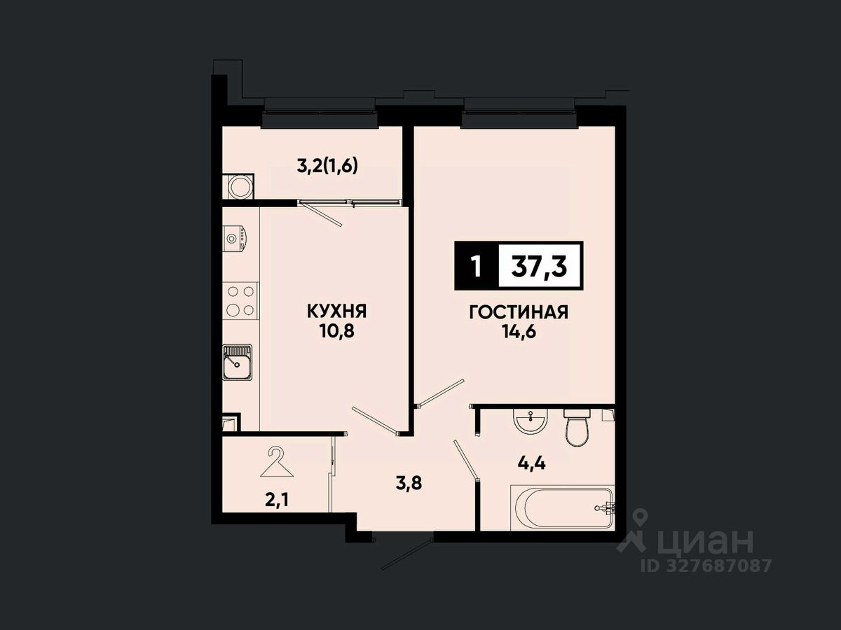 Общая площадь37,3 м²