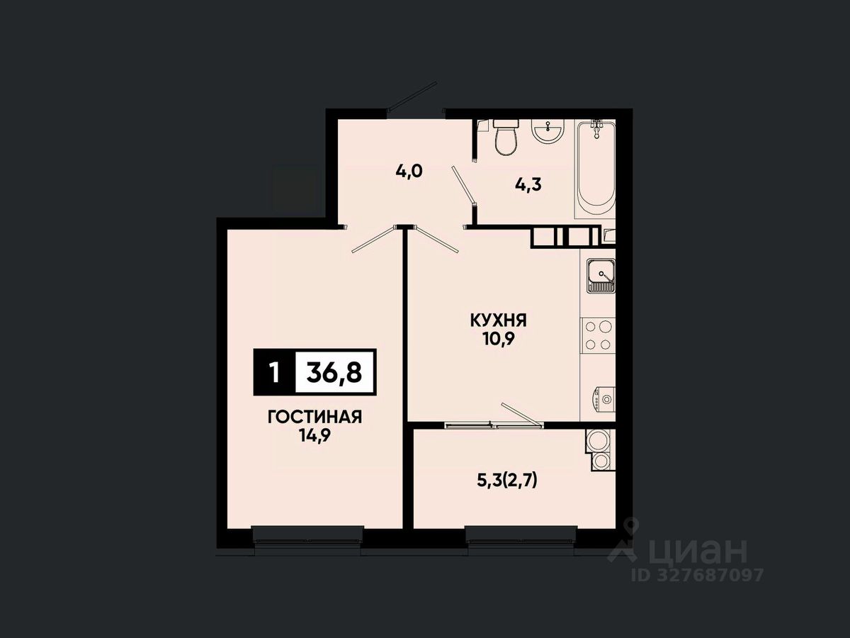 Общая площадь36,8 м²