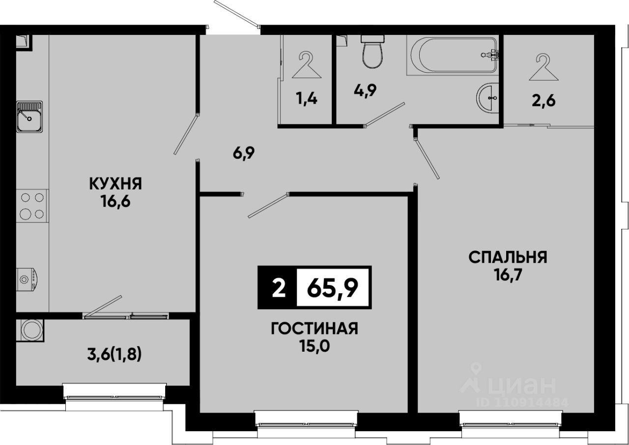 Общая площадь65,9 м²