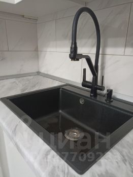 Кухня выполнена на заказ: современный, вместительный гарнитур до потолка обеспечит место для всех необходимых вещей, ниша под холодильник, ниша под стиральную машину с подводом воды и слива, в кухне качественная сантехника, большая мойка, сменная система фильтрации воды.