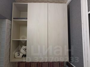 Много места для хранения на балконе: отдельный шкаф, рабочий стол, навесной шкаф изготовленные на заказ на теплом балконе обеспечивают дополнительную рабочую зону, небольшая сушилка для белья/вещей настенная.