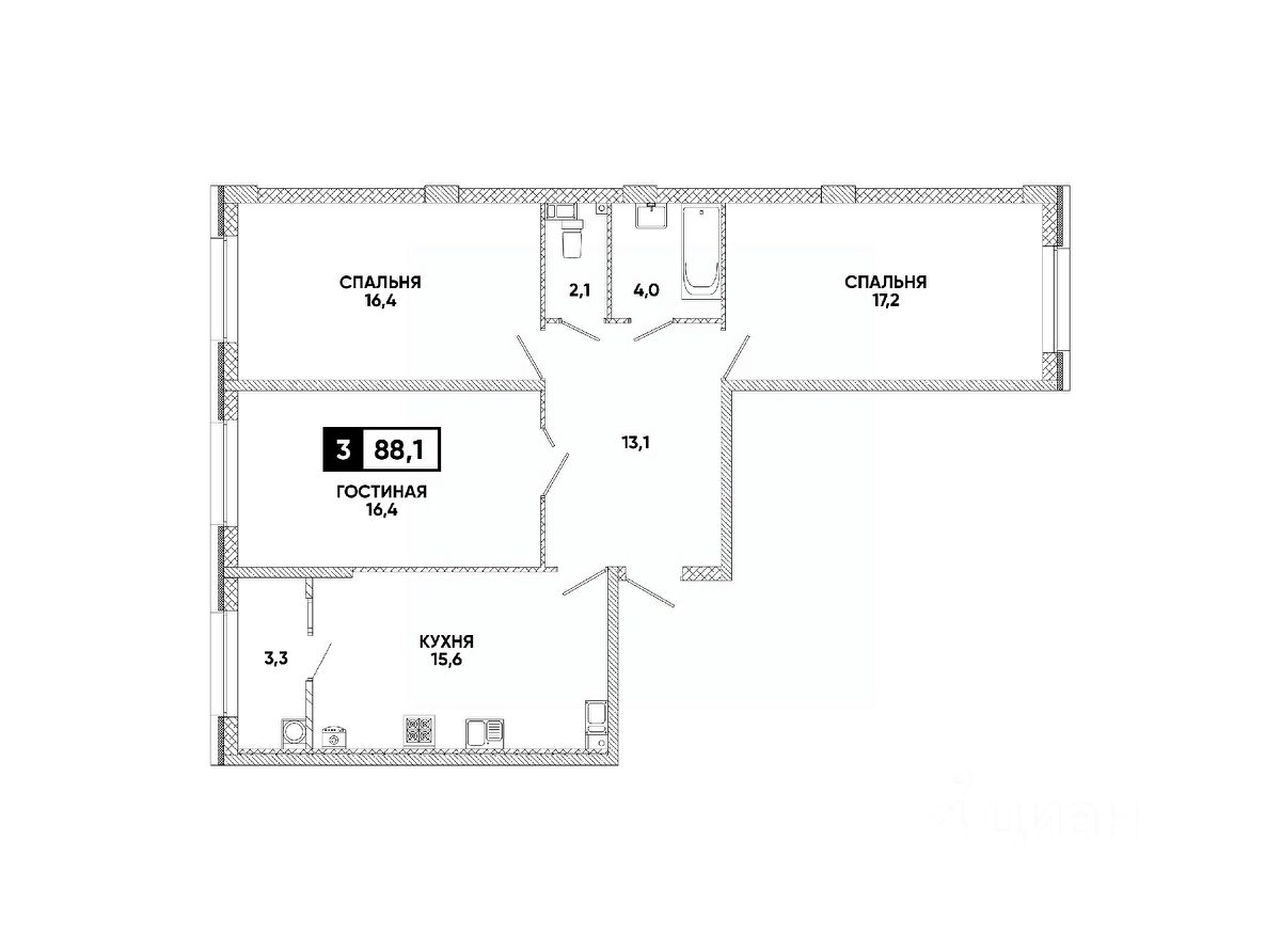 Общая площадь88,1 м²