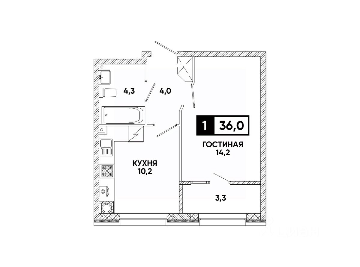 Эта планировка идеально подойдет как для первого жилья, так и для комфортной жизни одному или паре.