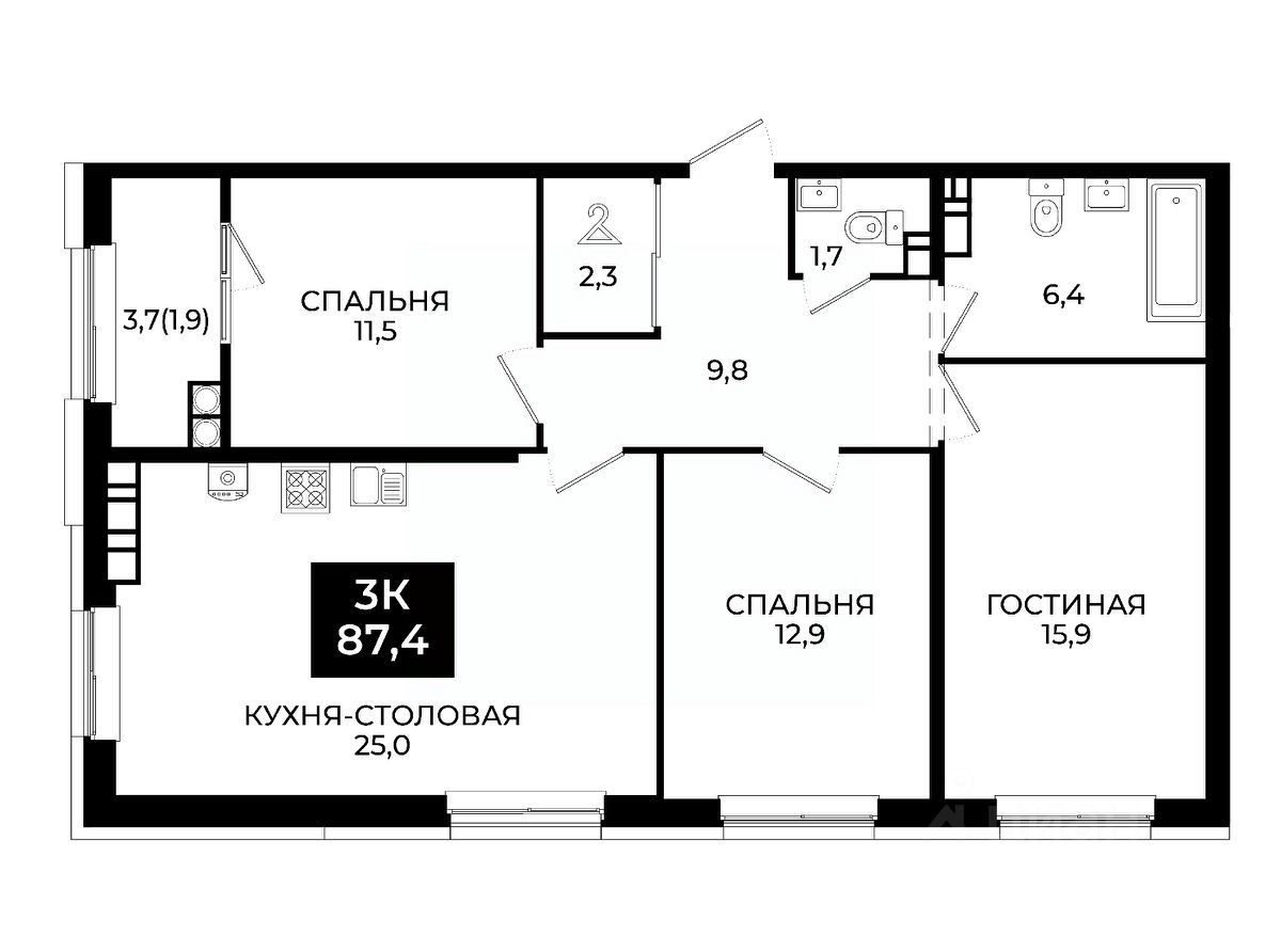 Общая площадь87,4 м²