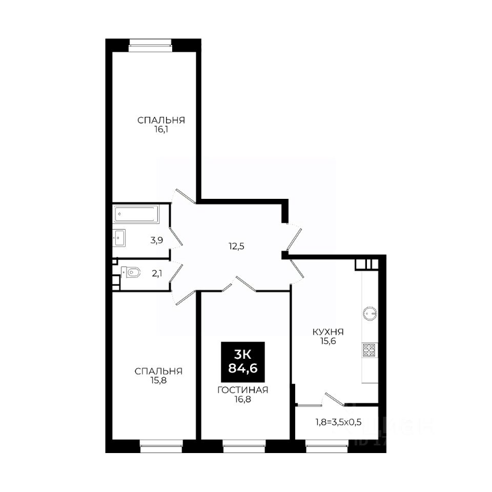 Общая площадь84,6 м²