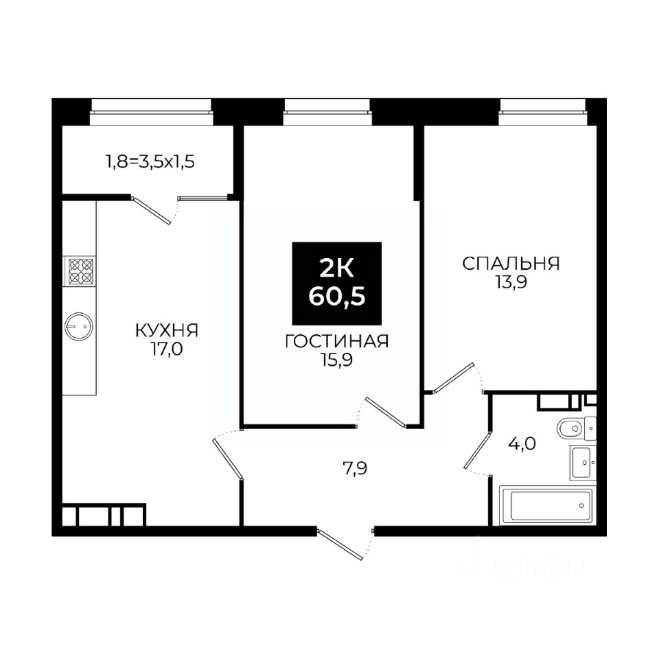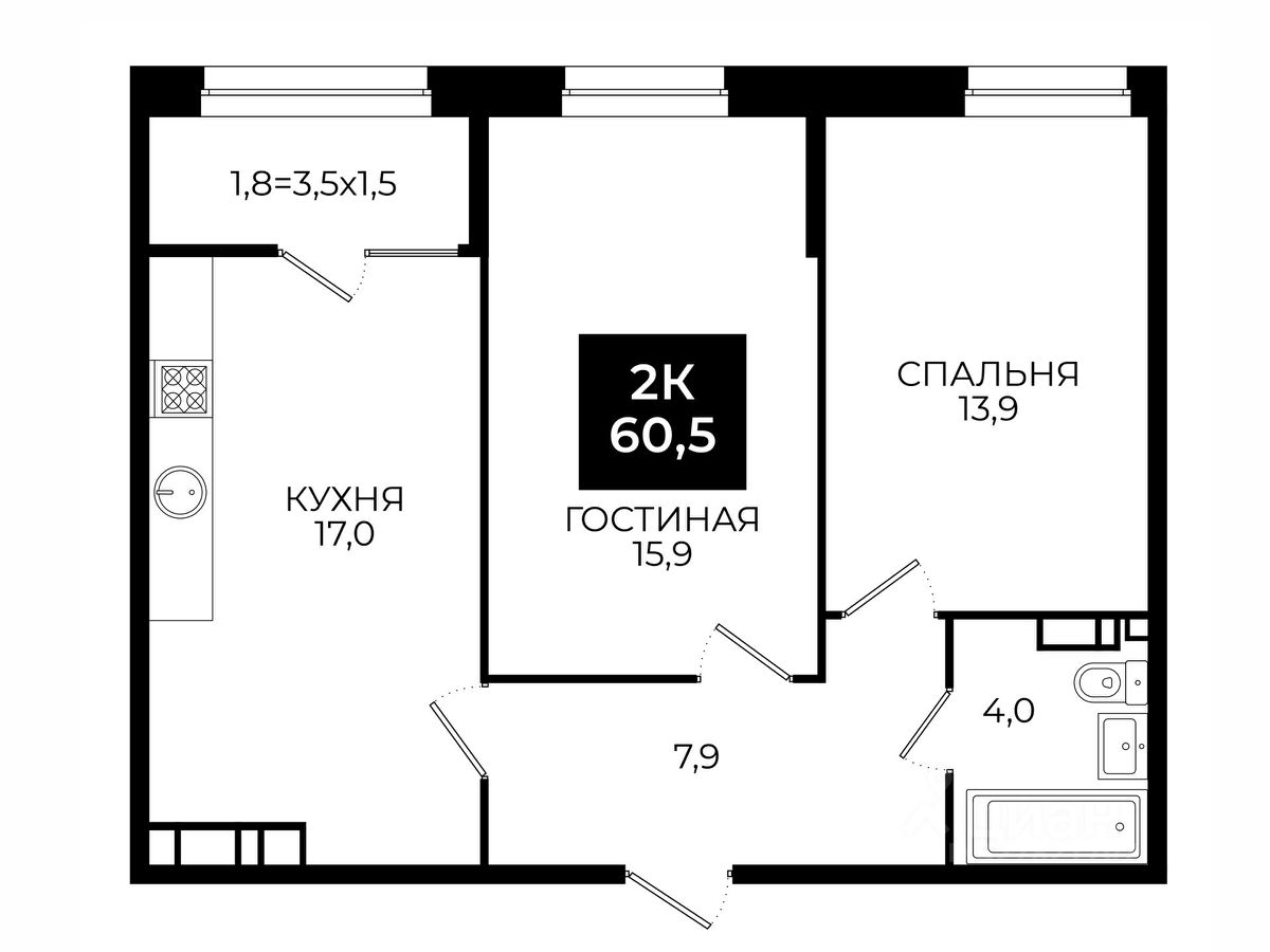 Общая площадь60,5 м²