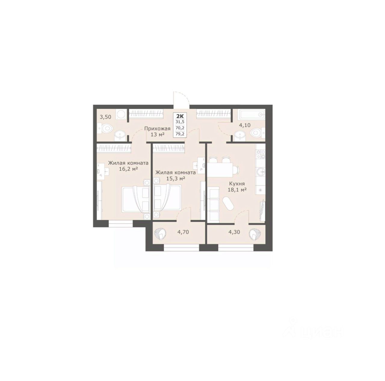 Общая площадь79,2 м²
