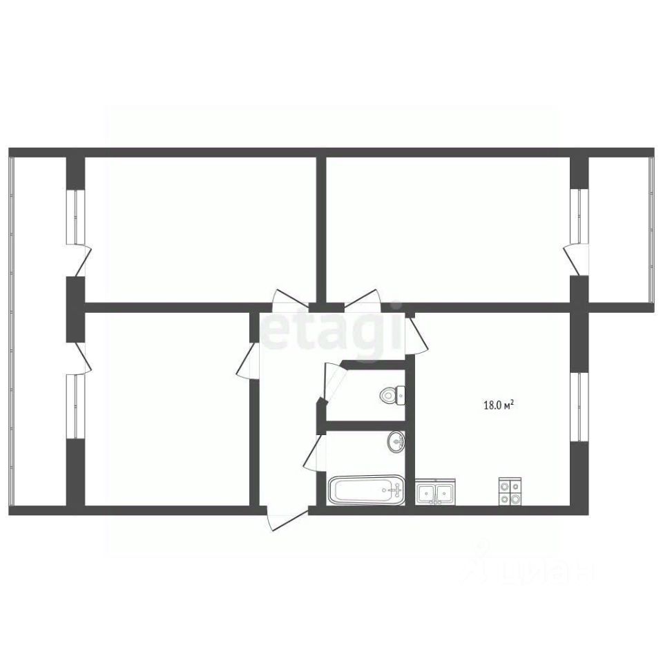 Квартира предлагает возможность создать интерьер с нуля, так как продается без ремонта, что позволяет новому владельцу реализовать любые дизайнерские решения.