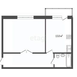 Общая площадь 55,5 кв.м, кухня 13 кв.м