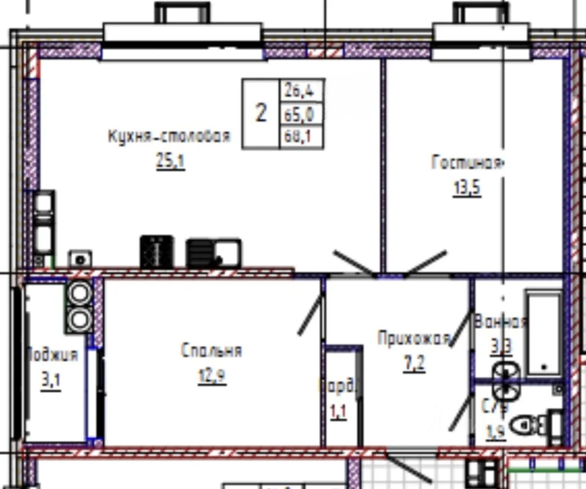 Продаётся просторная 2-х комнатная квпртира 68 кв.м в новом ЖК "1777'