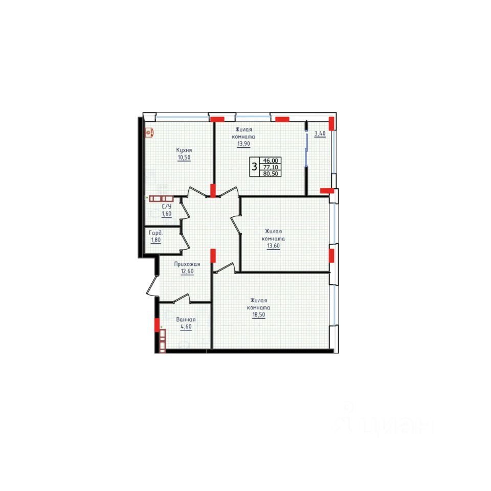 Общая площадь80,5 м²