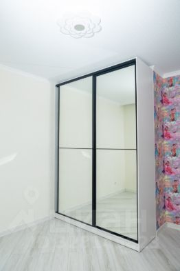 в детской комнате большой зеркальный шкаф.