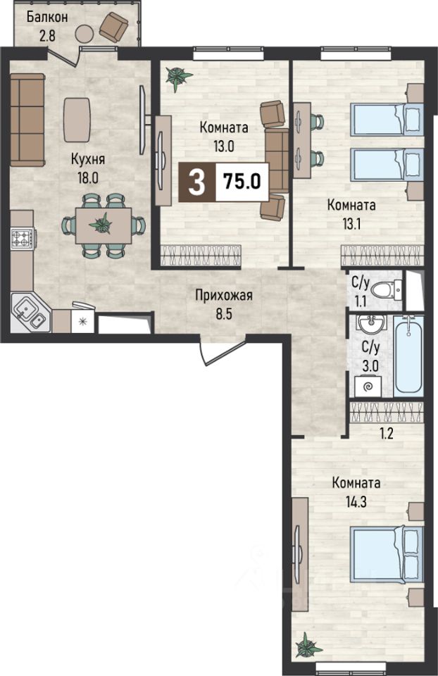 Продаётся 3-комнатная квартира в строящемся доме (7 очередь 2 этап), срок сдачи: I-кв. 2028, общей площадью 75 кв.м., на 10 этаже. Новый жилой комплекс "Живописный" расположен на территории Кавказских Минеральных Вод, рядом с основными курортными городами (Железноводск, Пятигорск, Ессентуки, Кисловодск) и горнолыжными курортами соседних республик.