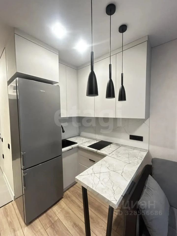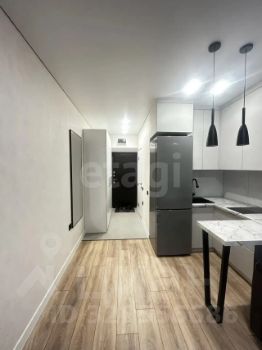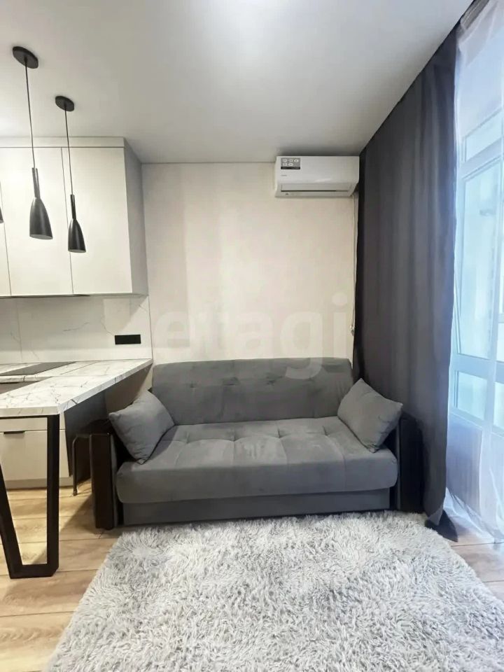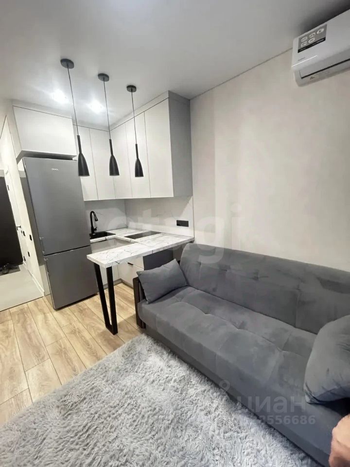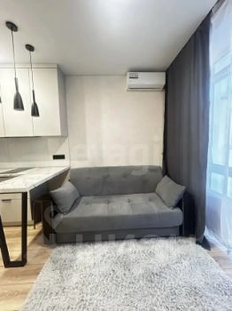Студия с дизайнерским ремонтом в новом кирпичном доме 2024 года постройки на 3 этаже. Пространство организовано с умом: кухня оборудована современной встроенной техникой и холодильником, в комнате установлен кондиционер и удобный диван. Окна выходят на тихий двор, обеспечивая спокойную атмосферу.