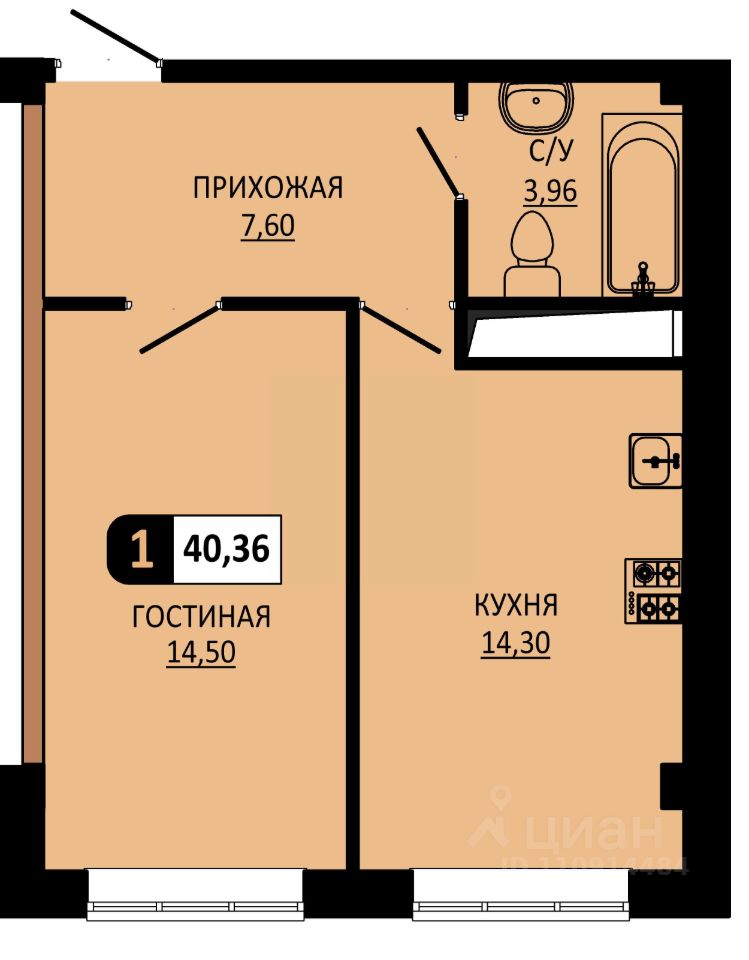 Площадь кухни14,3 м²