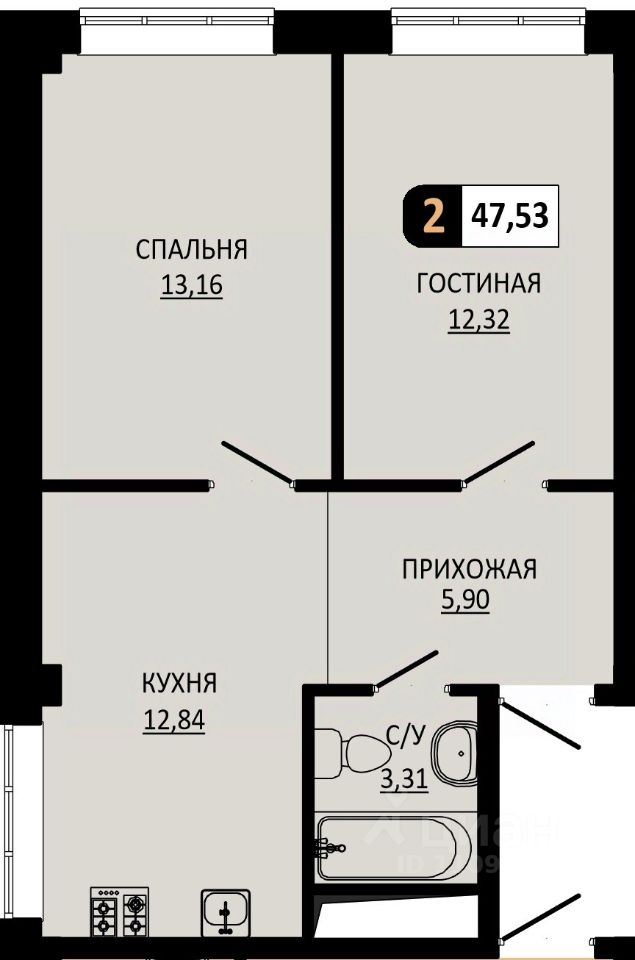 Общая площадь47,53 м²