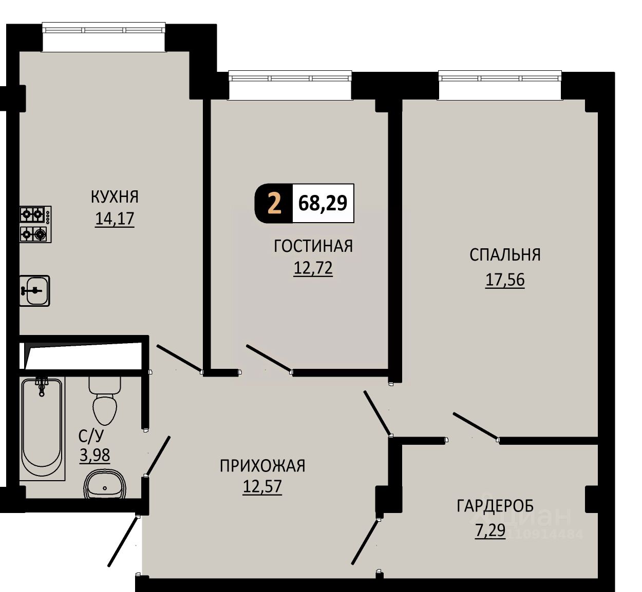 Общая площадь68,29 м²