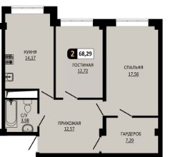 Продается 2-комн. квартира, 68,29 м²