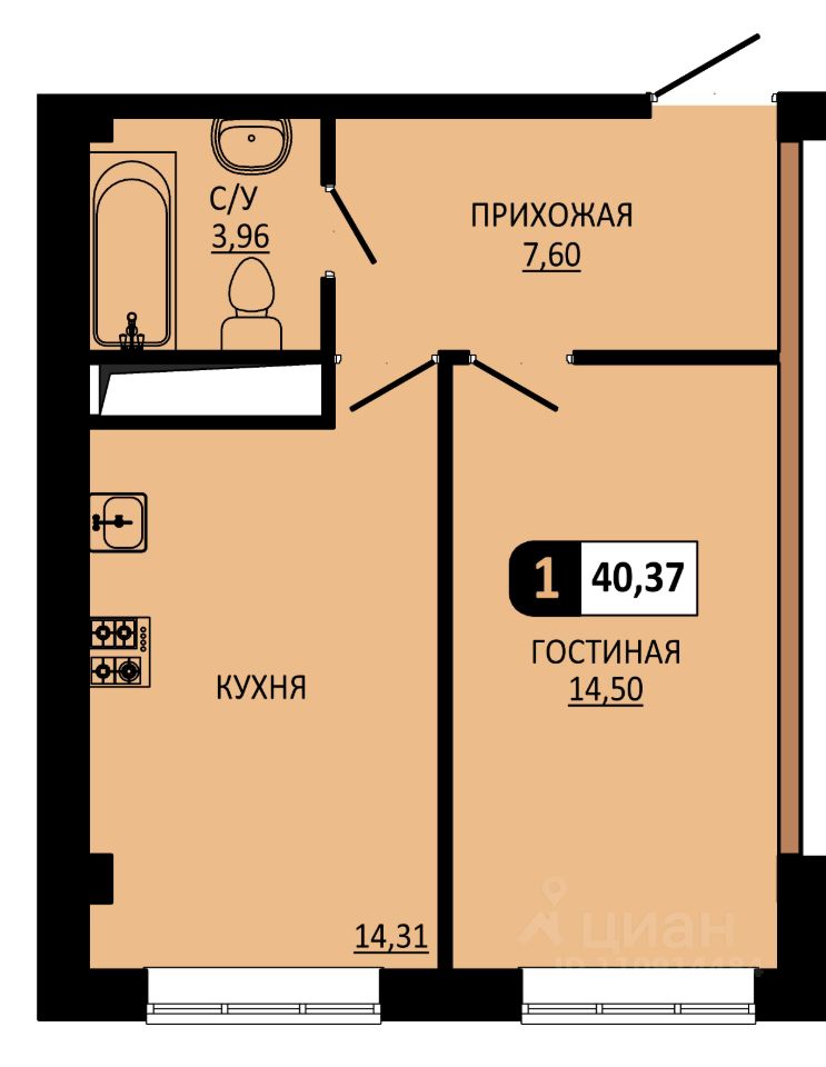 Площадь кухни14,3 м²