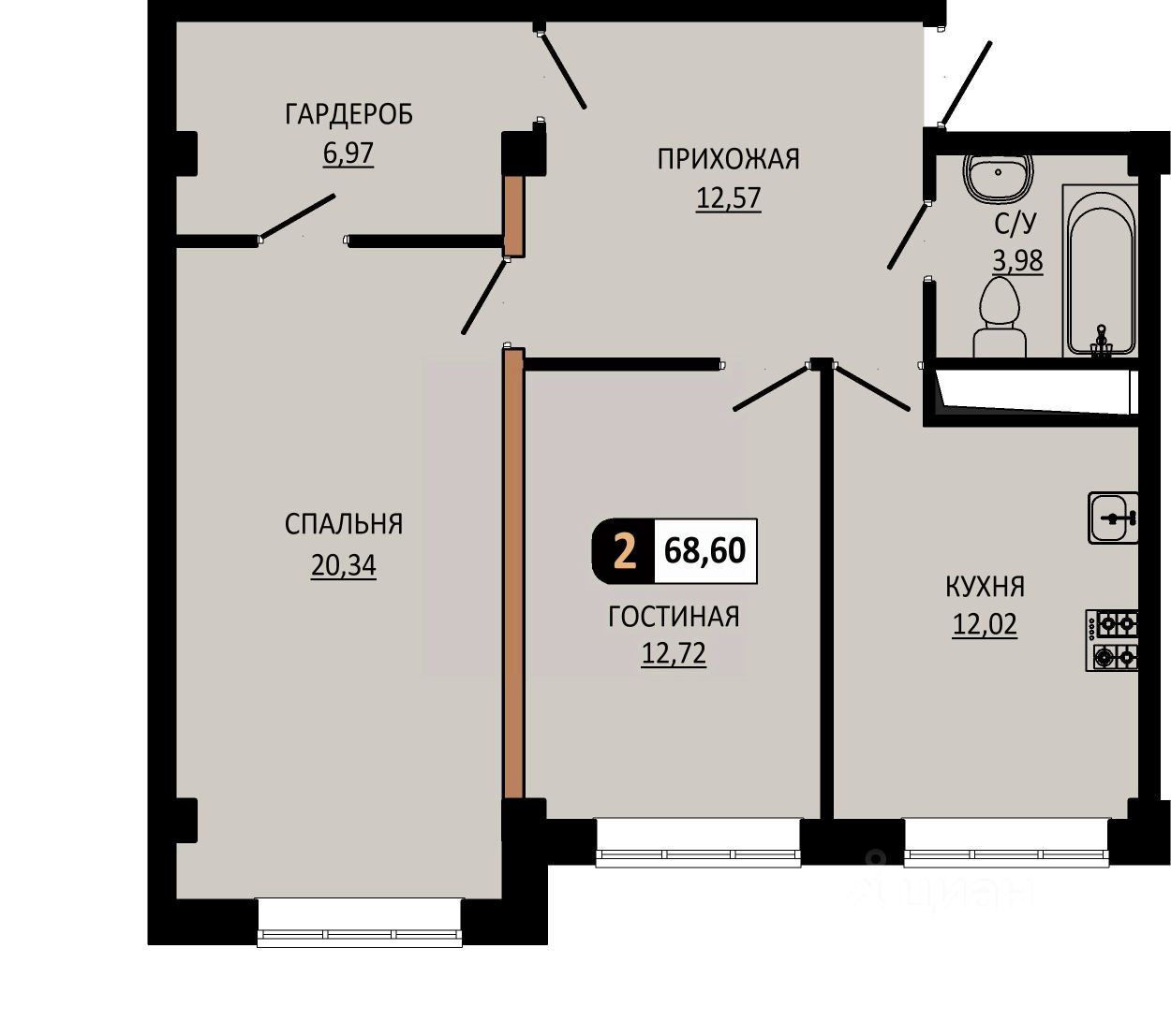 Общая площадь68,6 м²