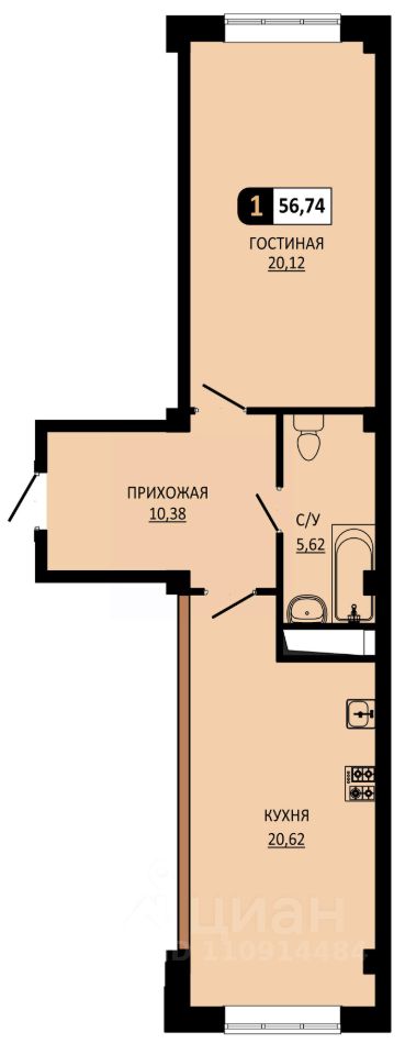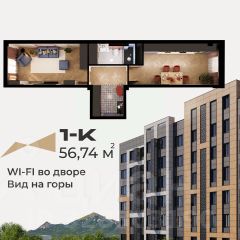 Продается 1-комн. квартира, 56,74 м²