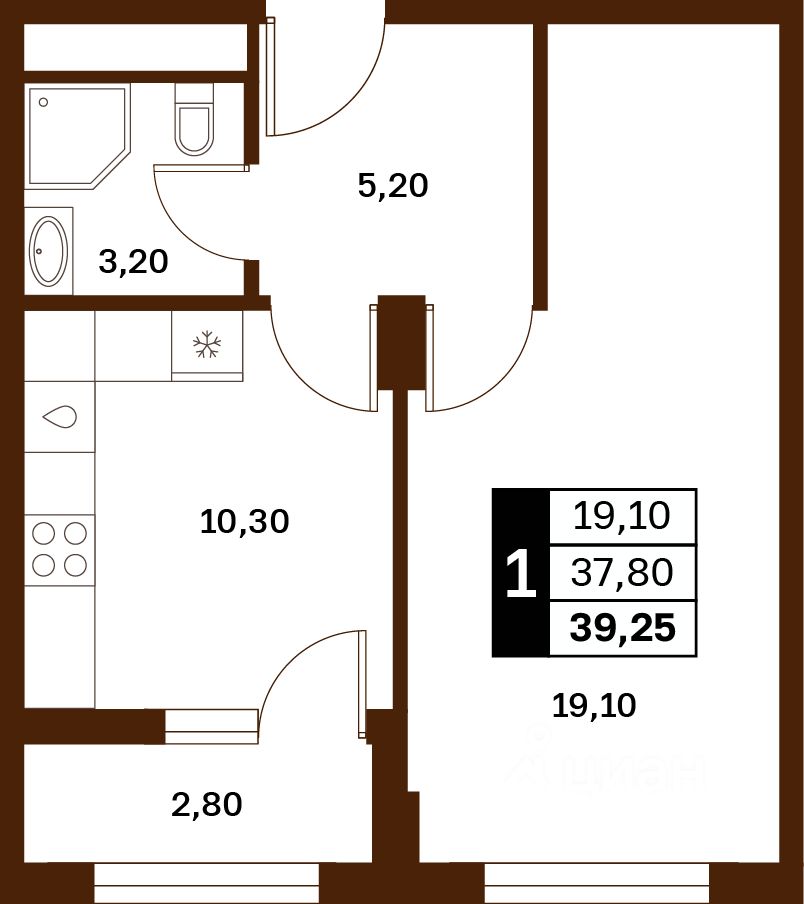 39,25 м²