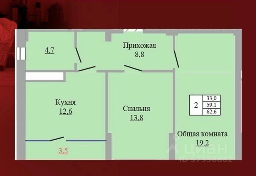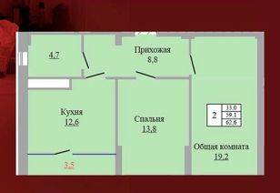 62,6 м²