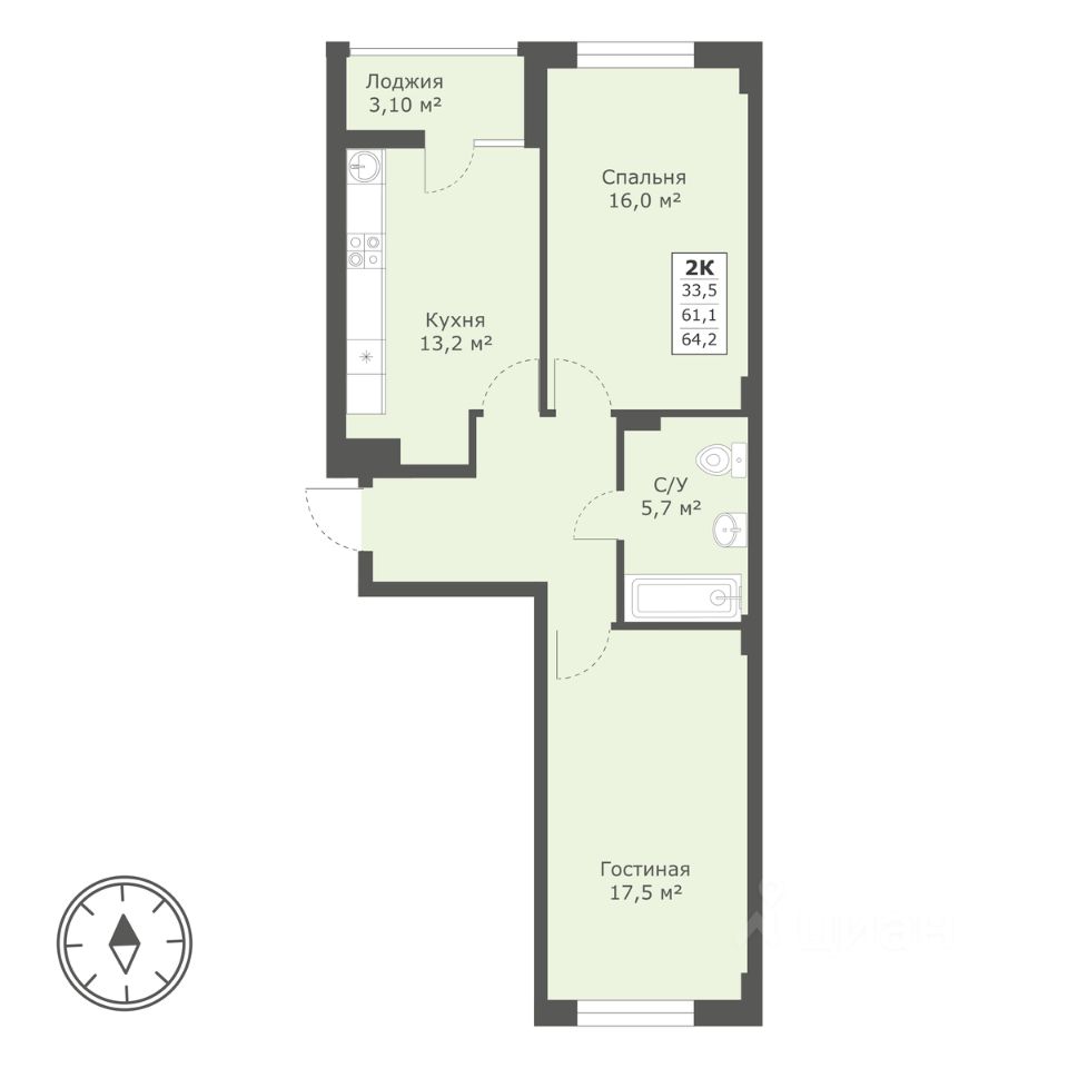 64,2 м²