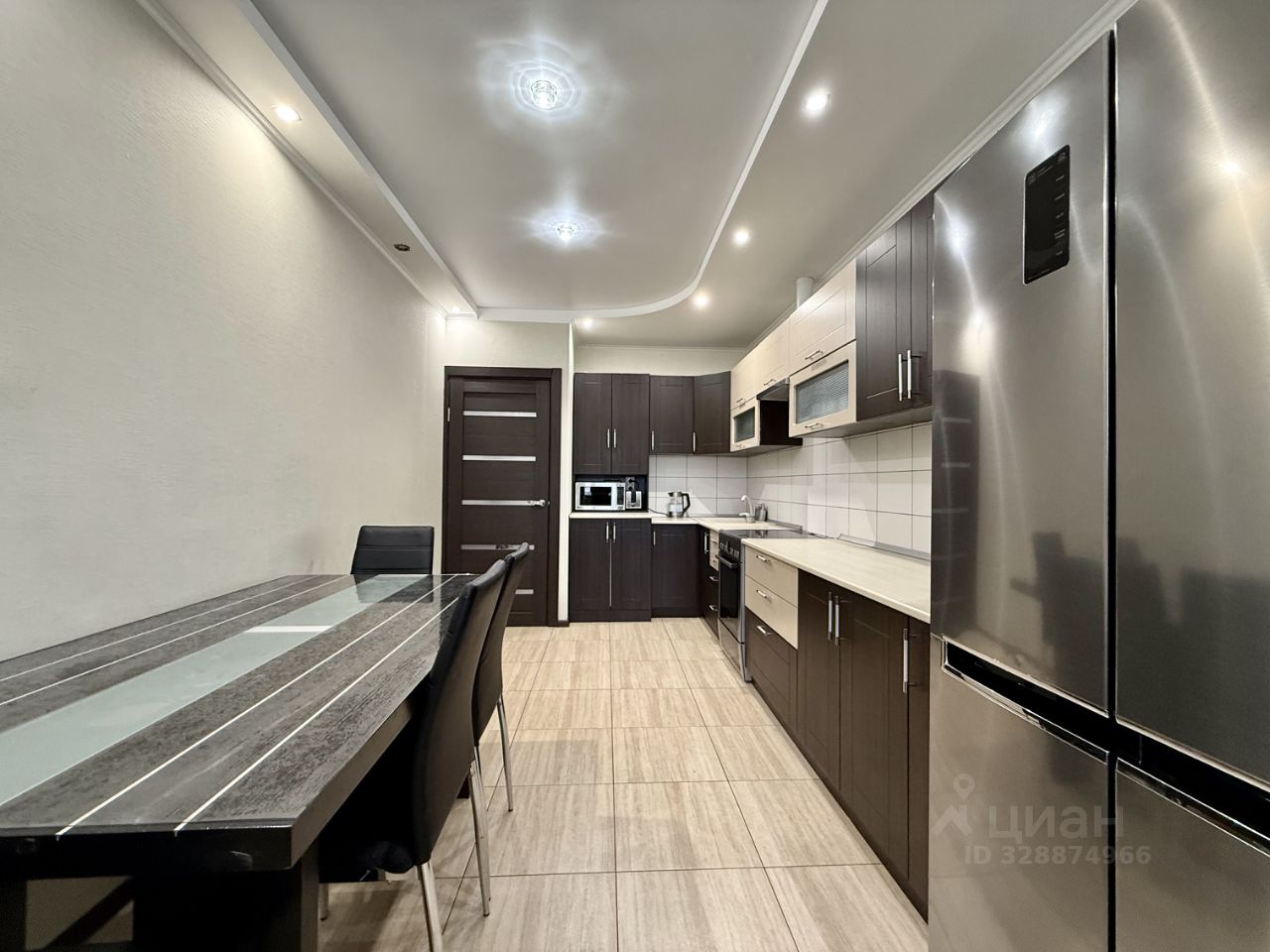 ХОРОШЕЕ ЖИЛОЕ СОСТОЯНИЕ — в гостиной и обеих спальнях на полу уложен ламинат, в прихожей и кухне — плитка, в санузле — плитка. Потолки в двух комнатах выполнены из гипсокартона, в кухне и санузлах — натяжные.