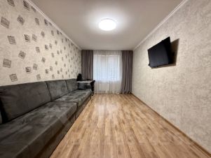 ОСТАЁТСЯ МЕБЕЛЬ И ТЕХНИКА — кухонный гарнитур, электрическая плита с духовым шкафом, вытяжка, часть мебели в комнатах, в том числе встроенный шкафкупе в прихожей, комод с зеркалом, а также сплитсистема в гостиной.