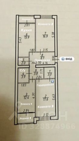 ФОРМАТ РАСПАШОНКИ — общая площадь квартиры по документам 81,6 м² + две лоджии, всего 89 м². Окна выходят на две стороны дома, что даёт хорошее естественное освещение и возможность проветривать квартиру. В одной из комнат предусмотрена гардеробная 3 м².