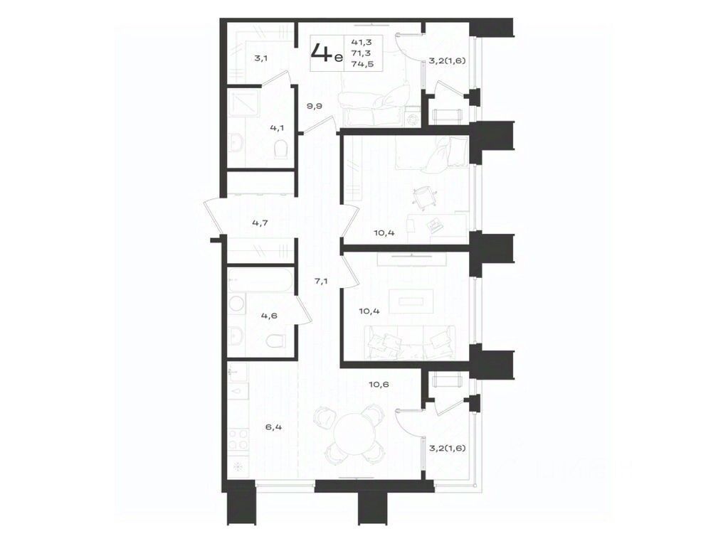 1 лоджия, 1 балкон