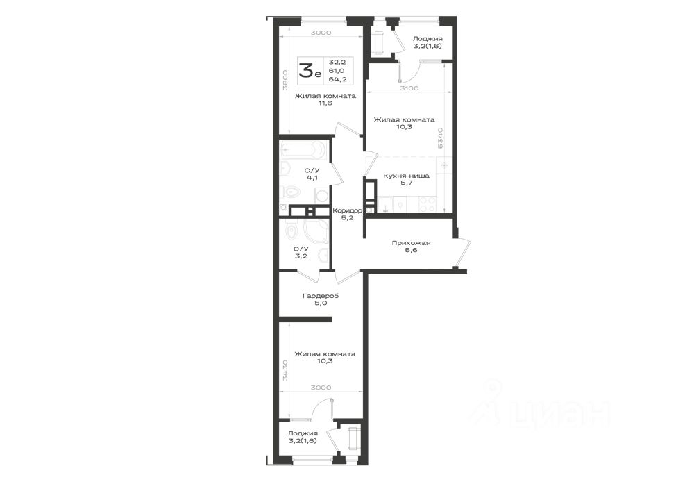 64,2 м²