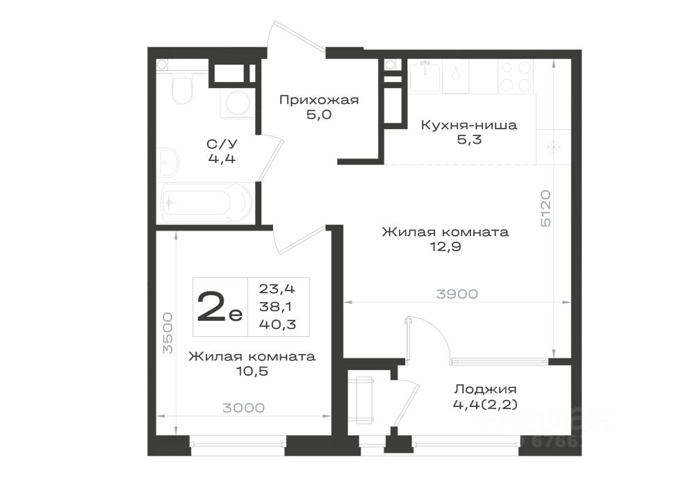 Общая площадь40,3 м²