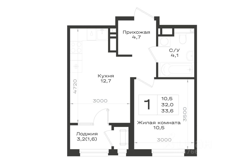 33,6 м²