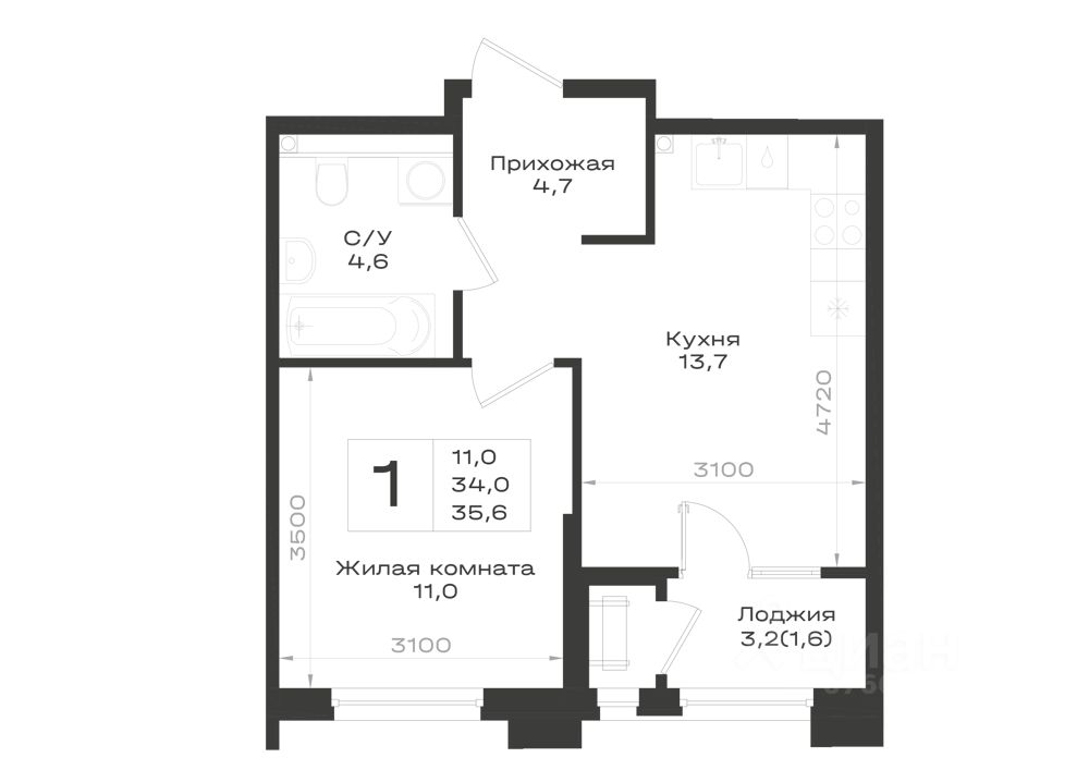 35,6 м²