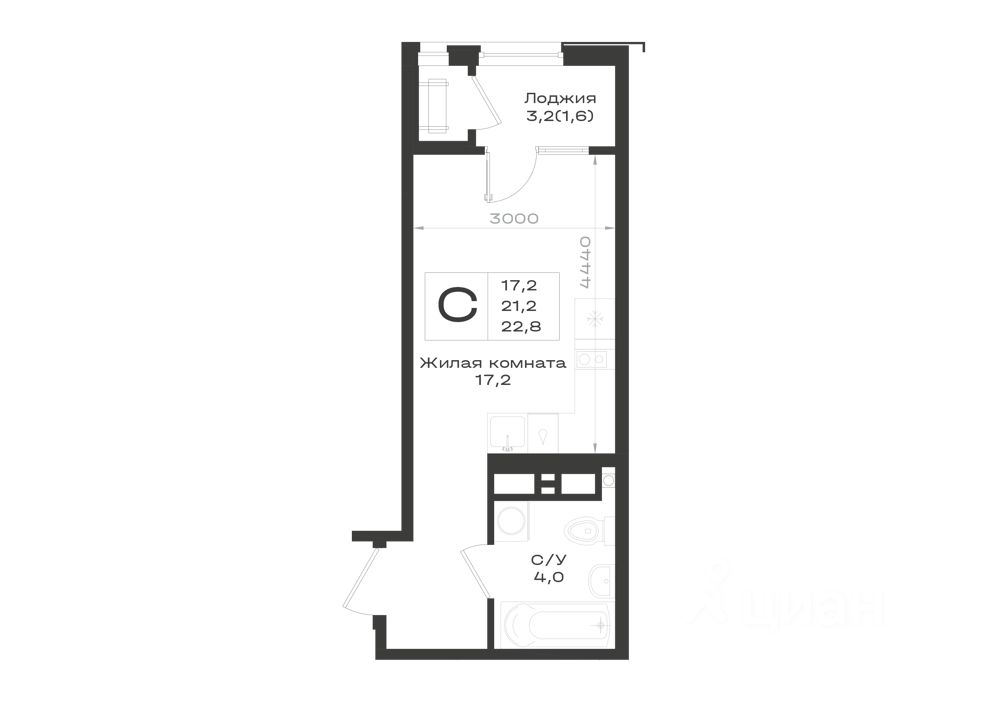 22,8 м²