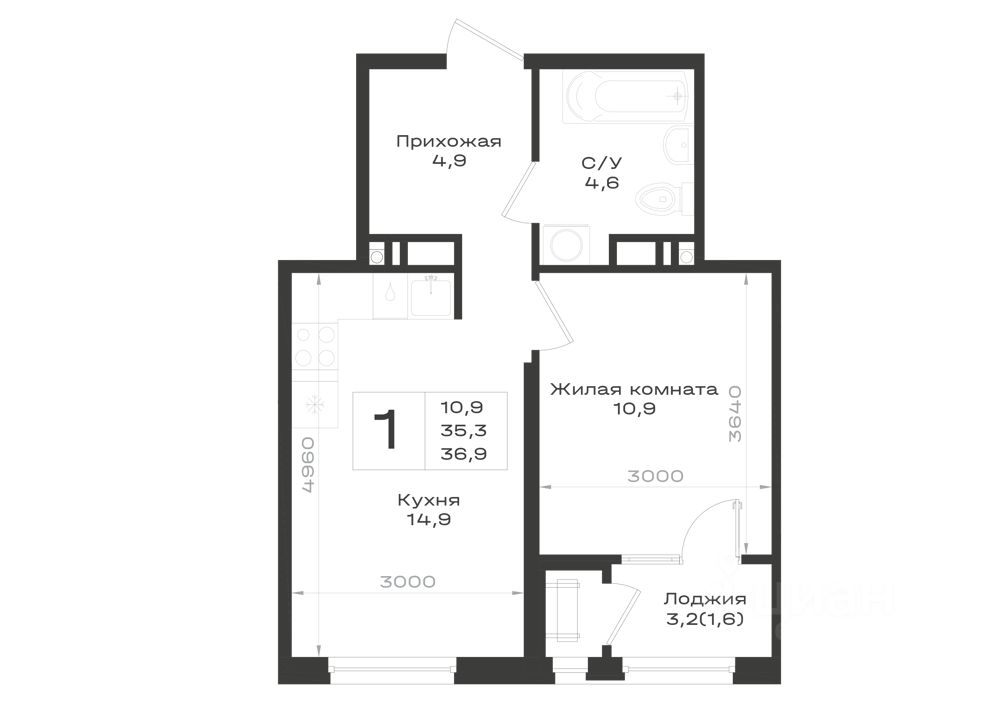 36,9 м²
