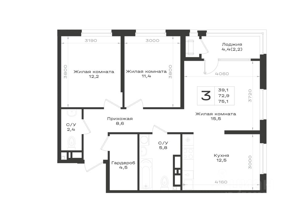 Общая площадь75,1 м²