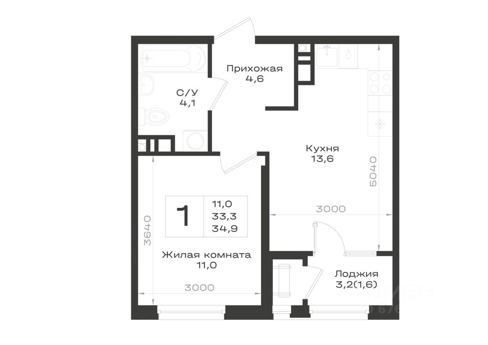 34,9 м²