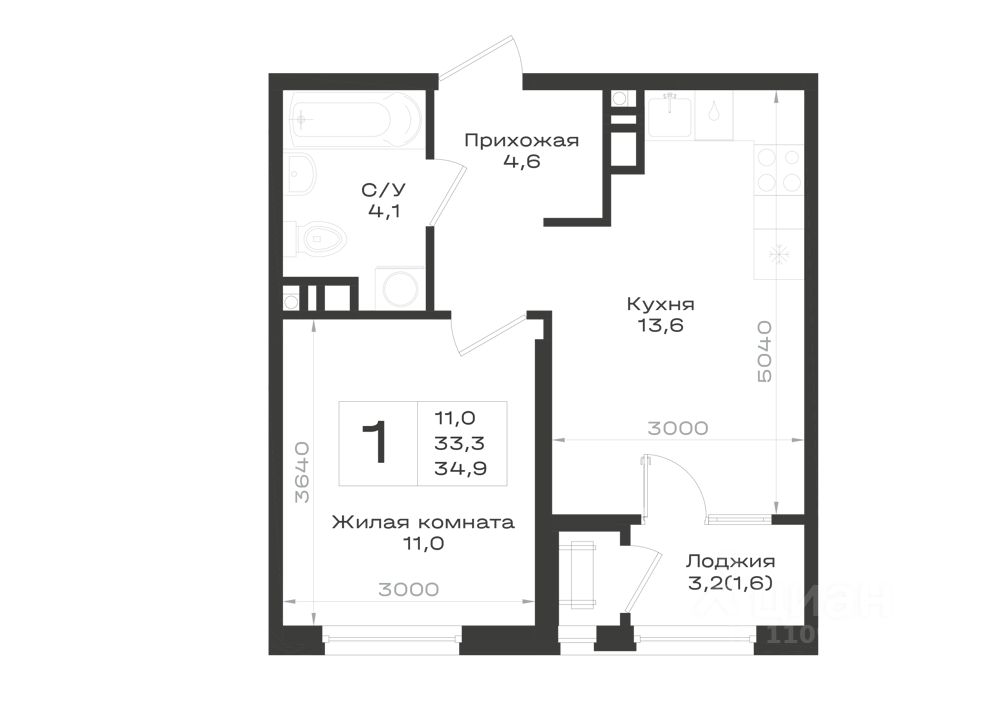 34,9 м²