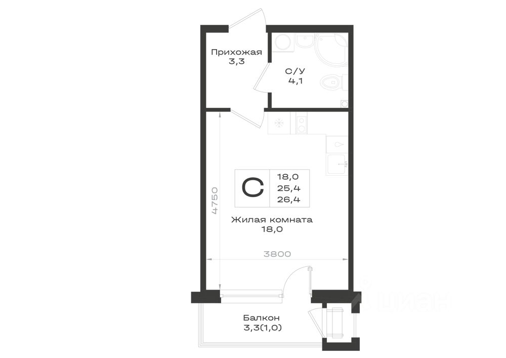 Продаётся 1-комнатная квартира в строящемся доме (Корпус 1), срок сдачи: II-кв. 2029, общей площадью 26.4 кв.м., на 2 этаже. Новый жилой комплекс "пос.Железноводский" от застройщика "ССК" расположен по адресу Россия, Ставропольский край, Предгорный муниципальный округ.