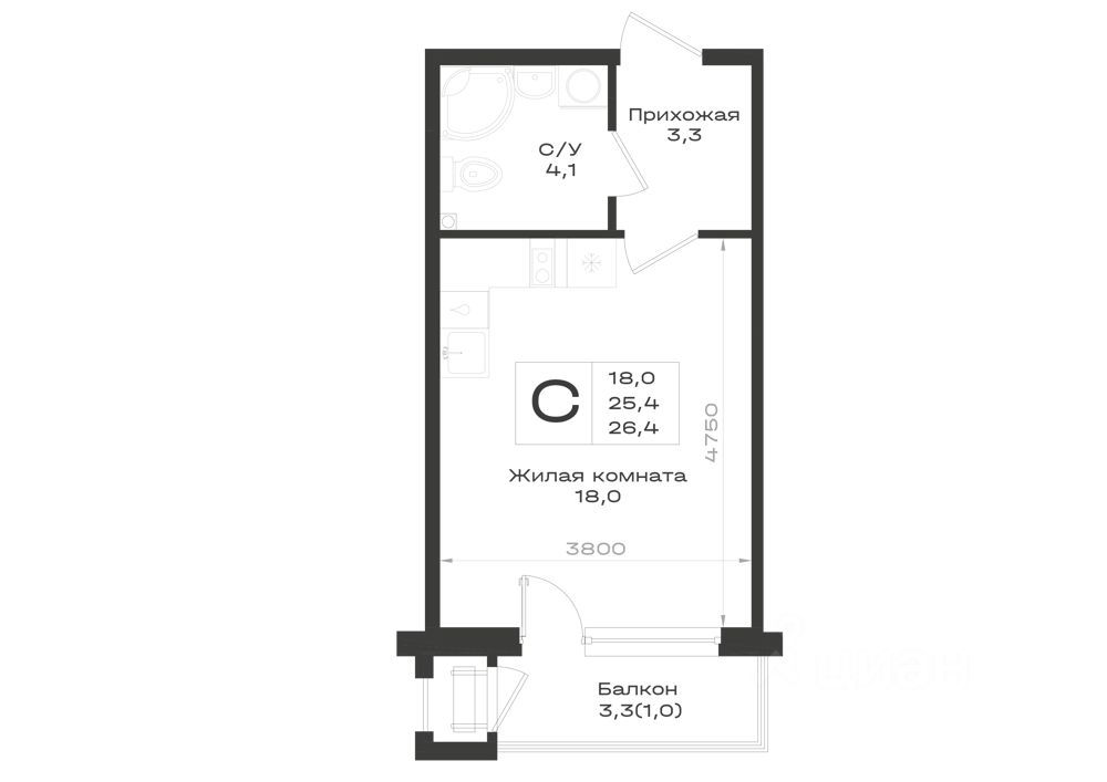 Продаётся 1-комнатная квартира в строящемся доме (Корпус 1), срок сдачи: II-кв. 2029, общей площадью 26.4 кв.м., на 2 этаже. Новый жилой комплекс "пос.Железноводский" от застройщика "ССК" расположен по адресу Россия, Ставропольский край, Предгорный муниципальный округ.