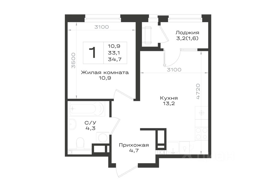 34,7 м²