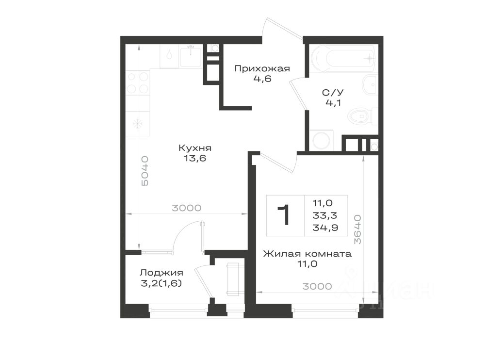 Общая площадь34,9 м²