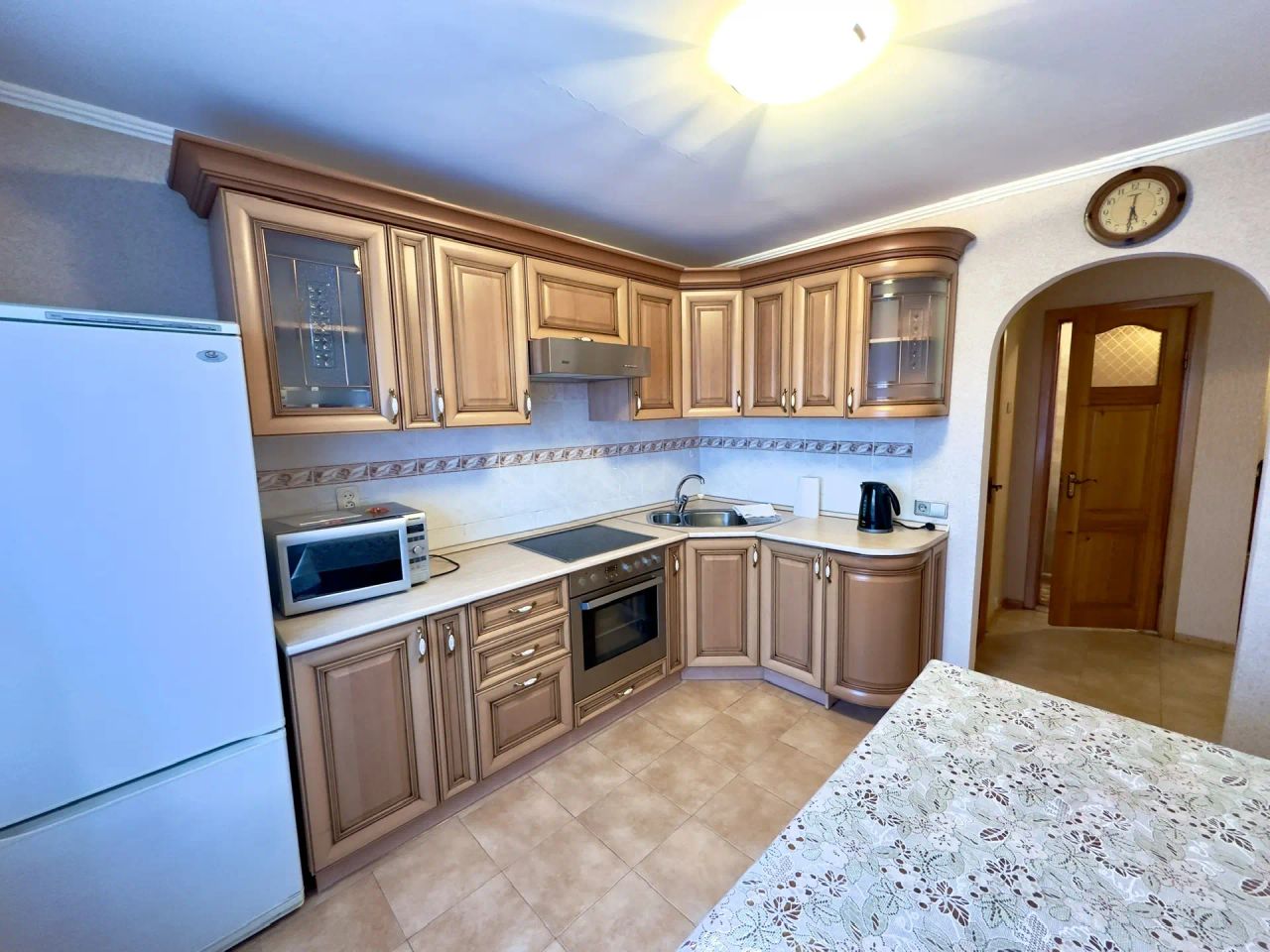 Очень красивый кухонный гарнитур,встроенная техника духовой шкаф и электро панель. Остается микроволновка, холодильник, все что на фото остается. все аккуратно, чисто, ремонт не новый но выглядит очень хорошо. Качественный ухоженный паркет.
