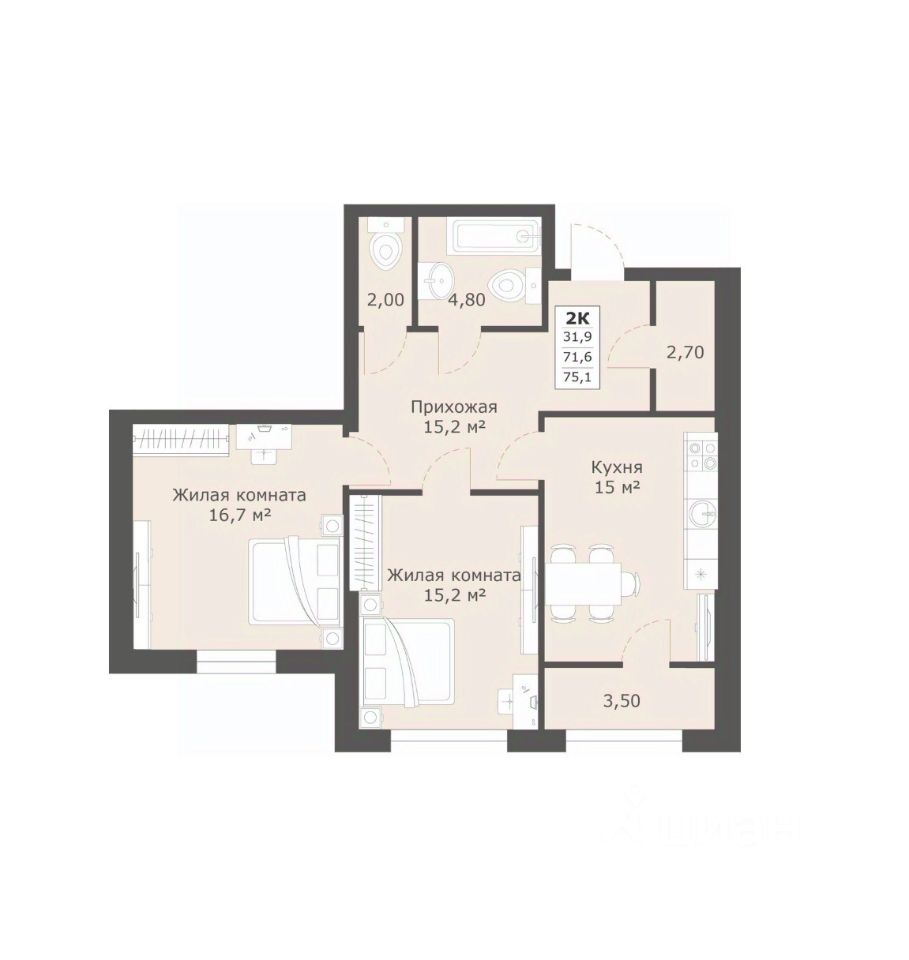 Жилая площадь31,9 м²