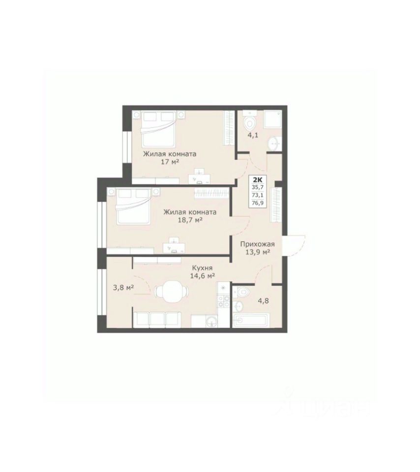 Общая площадь76,9 м²
